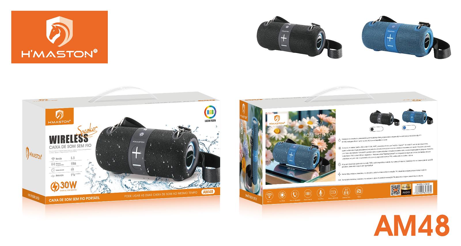 Caixa de Som H'maston 30W Bluetooth Portátil com Luzes LED