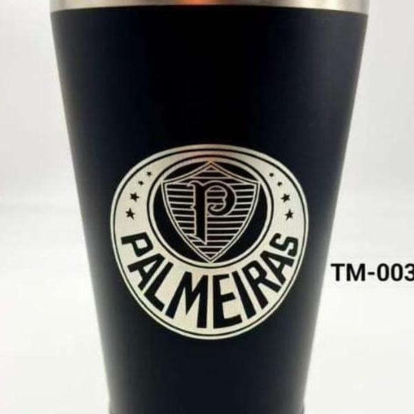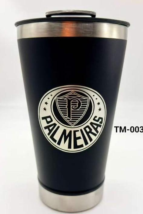Copo Do Palmeiras Térmico Inox Com Tampa Abridor 473ml Cor Preto