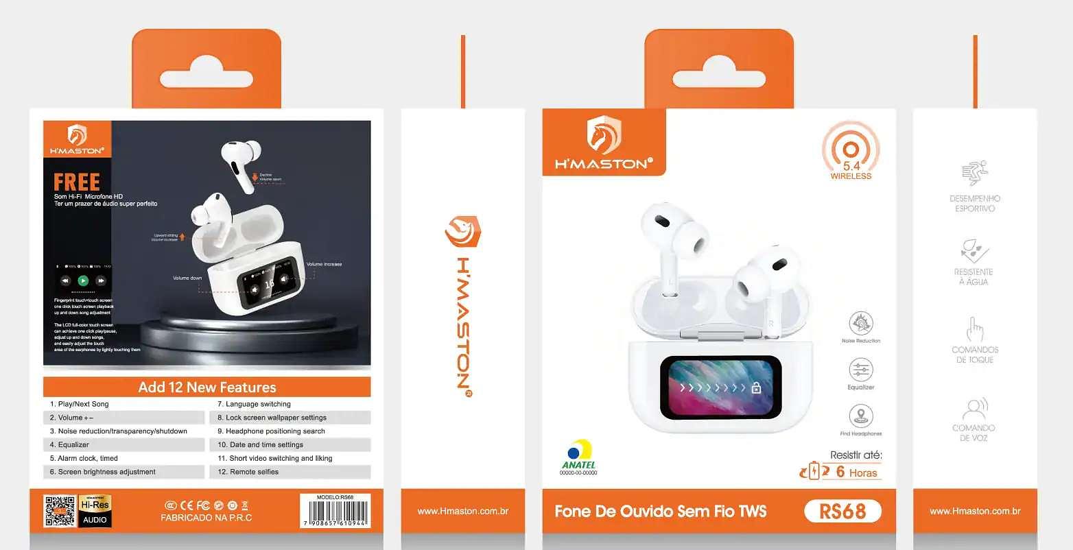 Fone De Ouvido Tela Touch Bluetooth Sem Fio