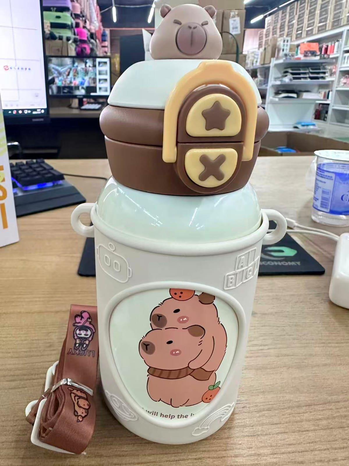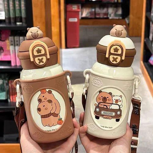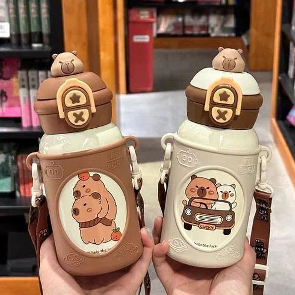Garrafa Termica Capivara Escolar Infantil com Canudo E Trava 500ml