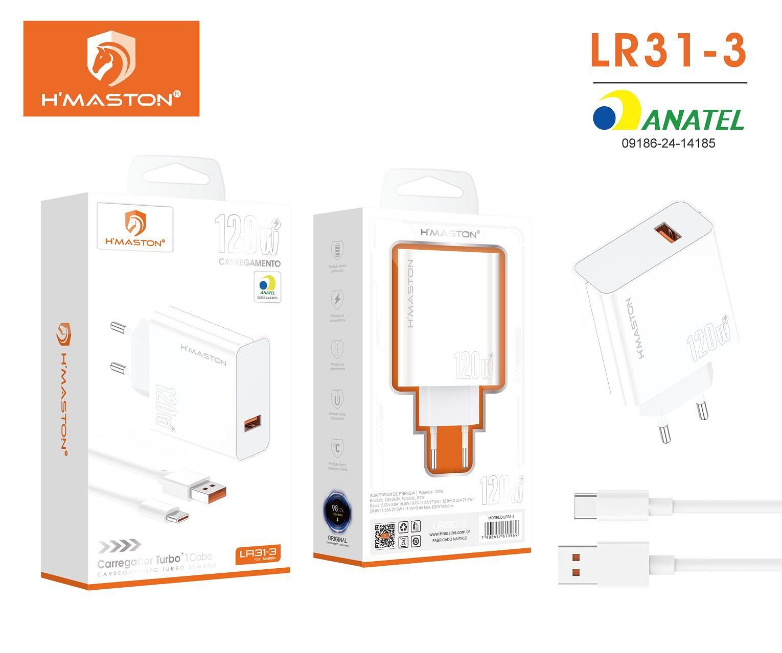 turbo 120w com cabo type c/usb hmaston